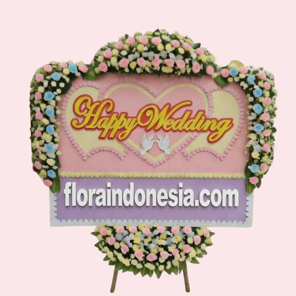 Kirimkan ucapan termegah dengan ukuran raksasa hingga 2.8m x 2m. Menggunakan kombinasi bunga segar atau bunga kertas berkualitas dengan dekorasi maksimalis yang mencolok. Pilihan terbaik untuk memberikan kesan prestisius di acara pernikahan atau peresmian bisnis besar.